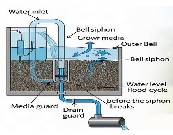 Ne convient pas à tous les systèmes : Le siphon cloche est spécifique aux lits de culture à substrat et n'est pas adapté aux systèmes NFT ou DWC.